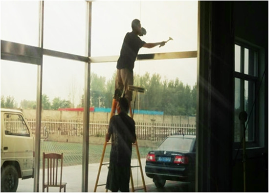 由于場(chǎng)地大、玻璃上沾有大量的水泥渣等,所以清潔起來(lái)比較費(fèi)勁,但是大家沒(méi)有半分怠慢,很快投入到勞動(dòng)當(dāng)中,高處玻璃夠不到,就搬來(lái)梯子。盡管專(zhuān)業(yè)清潔工具不多,但大家辦法不少,找到了很多實(shí)用的替代品,一樣能讓廠房潔凈明亮。悶熱的天氣絲毫沒(méi)有影響員工的勞動(dòng)熱情,在大家一陣揮汗如雨后,廠房煥然一新。